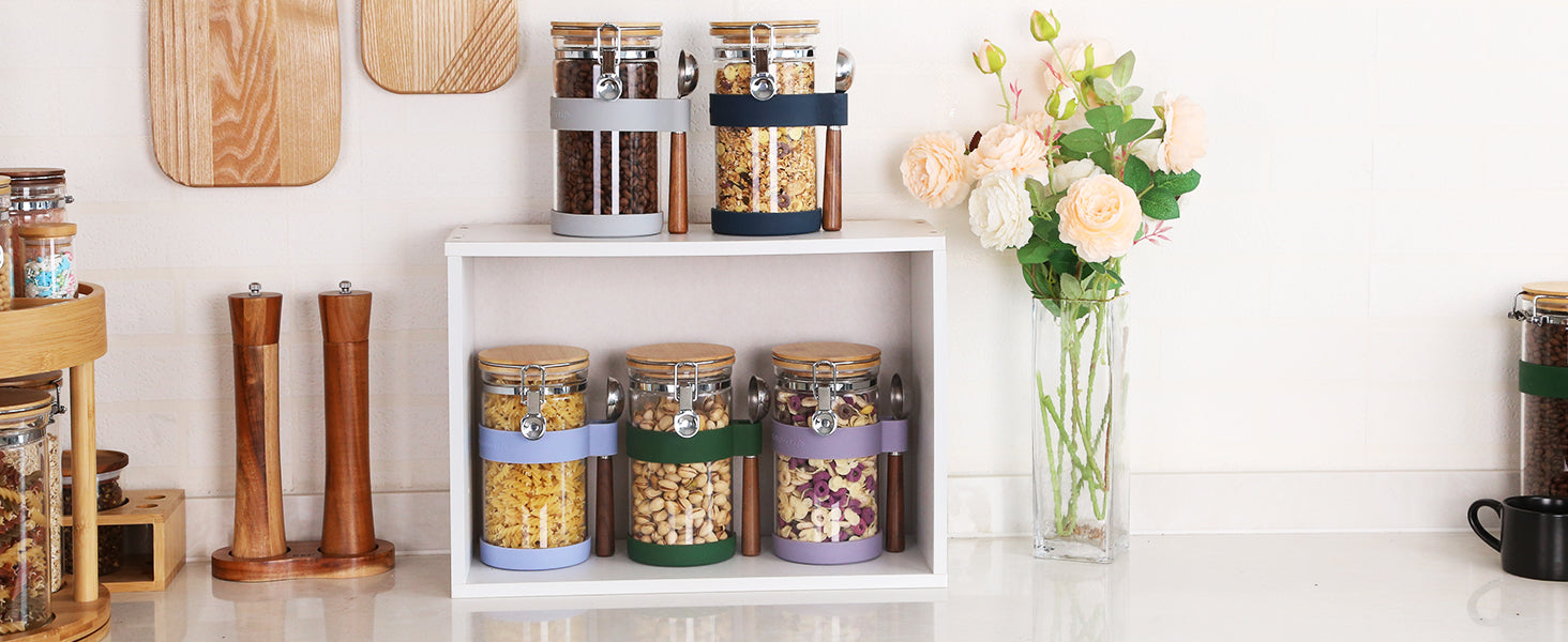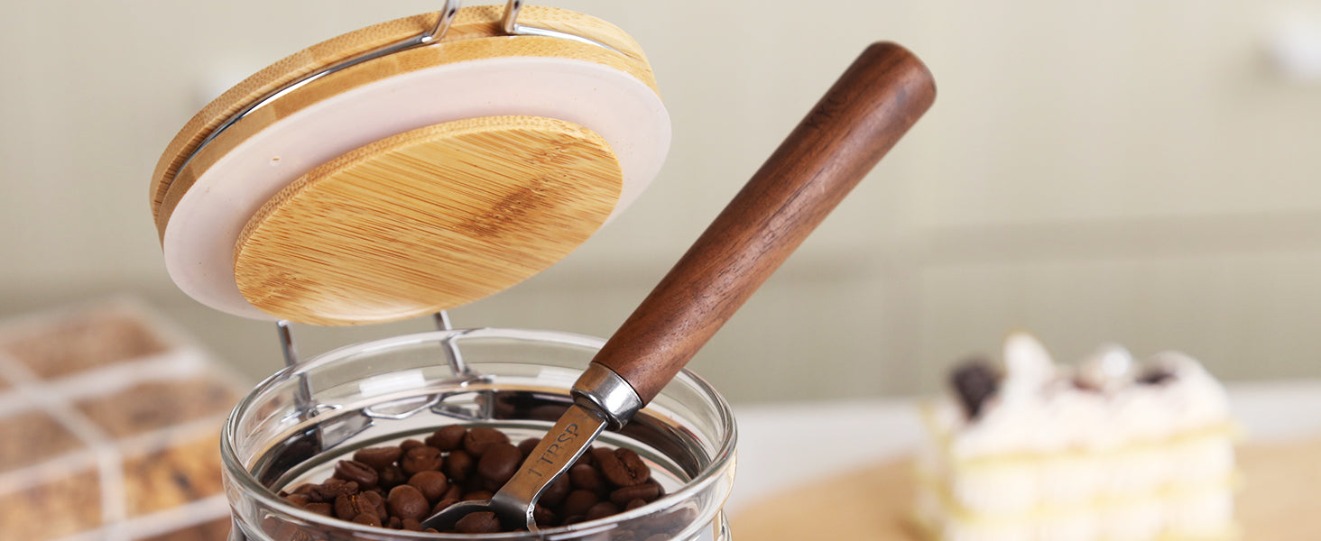 - 【 Easy to Clean 】 The glass coffee jar with bamboo lid can be stackable when necessary for space saving storage or lined up in your kitchen or pantry, meeting all your storage needs and avoid the further cabinet clutter. With 3.94" wide mouth design, which can be easily washed by hand, and the glass storage jars body is dishwasher safe (the bamboo lid is not).