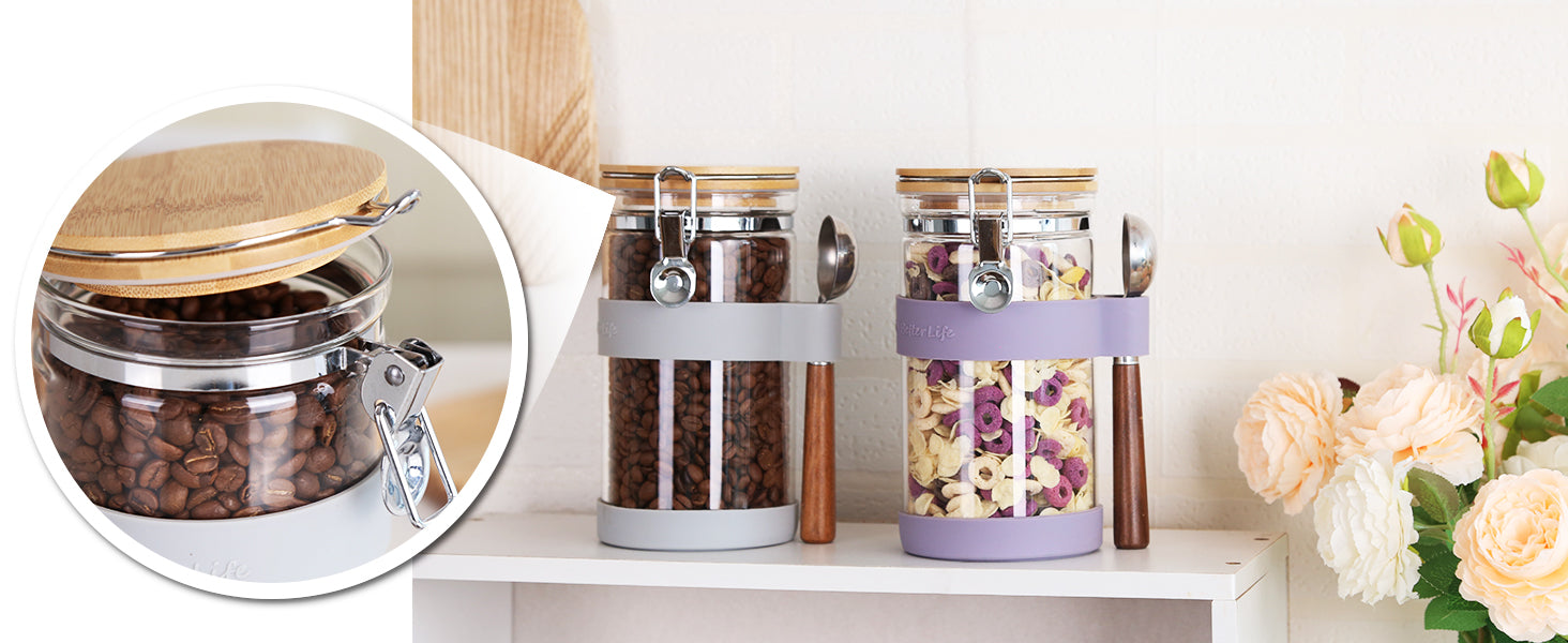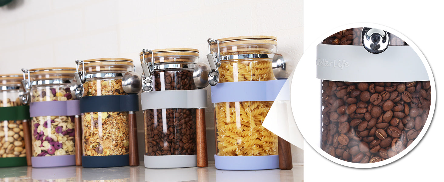 - 【Good air tight seal】: the airtight lid has a locking clamp and silicone sealed ring,the silicone sealed ring keeps its contents fresh,so the glass sealed jar is perfect for storing coffee beans,ground coffee,cocoa,nuts or candy bluck, keeps your coffee beans nice and fresh.