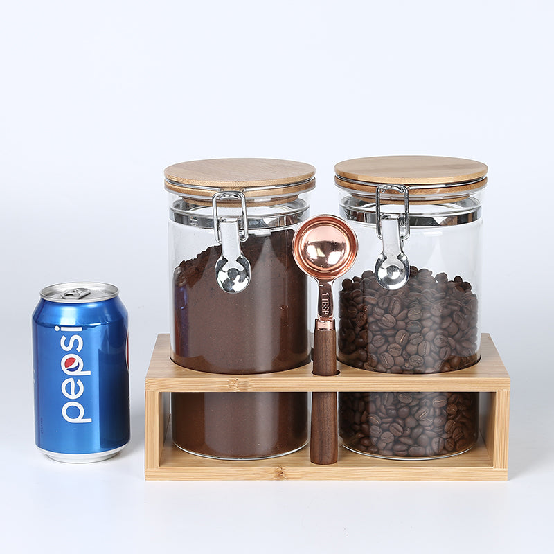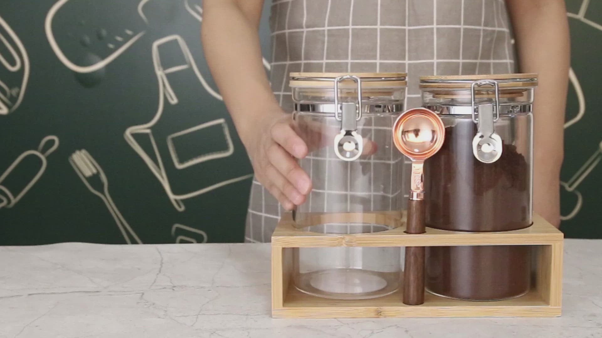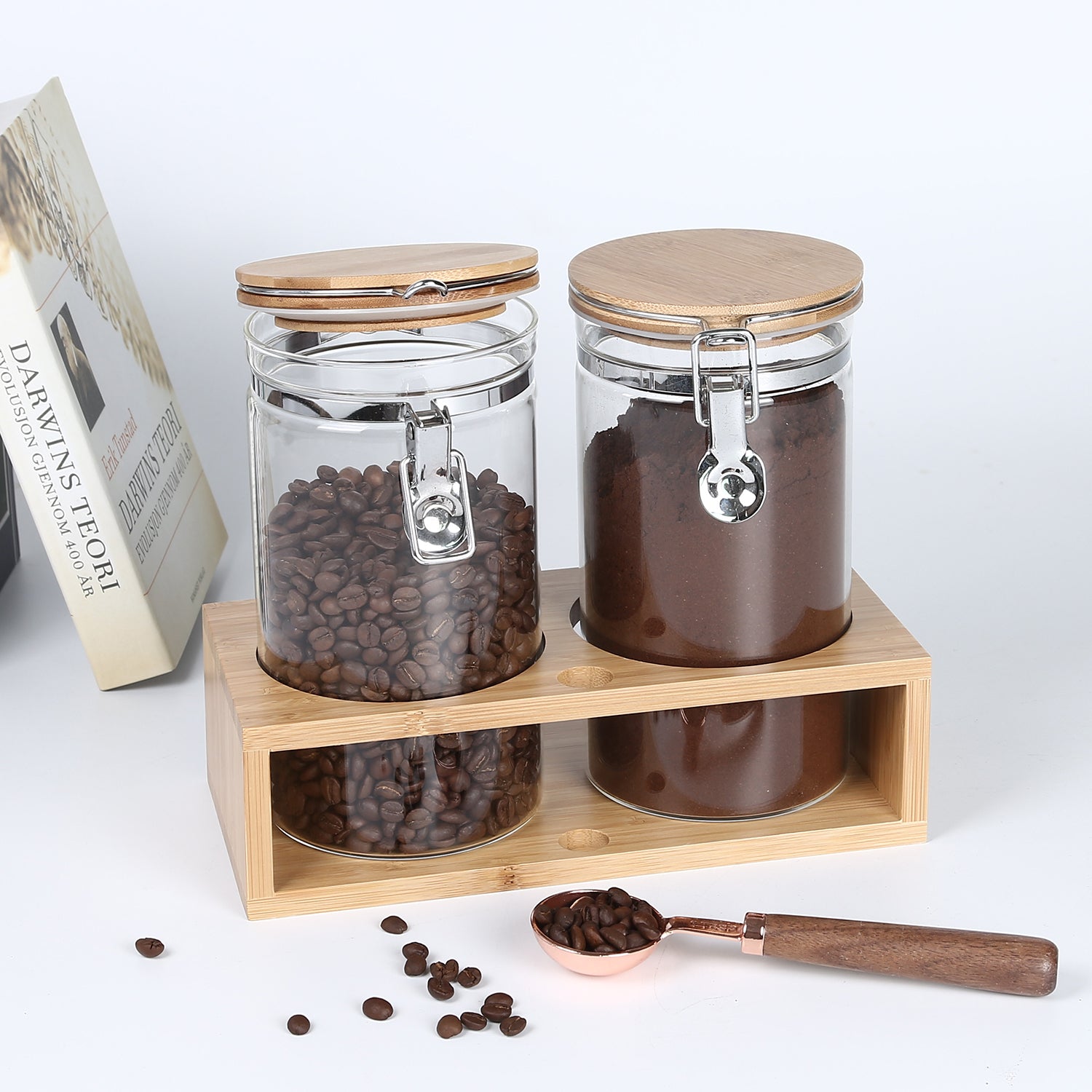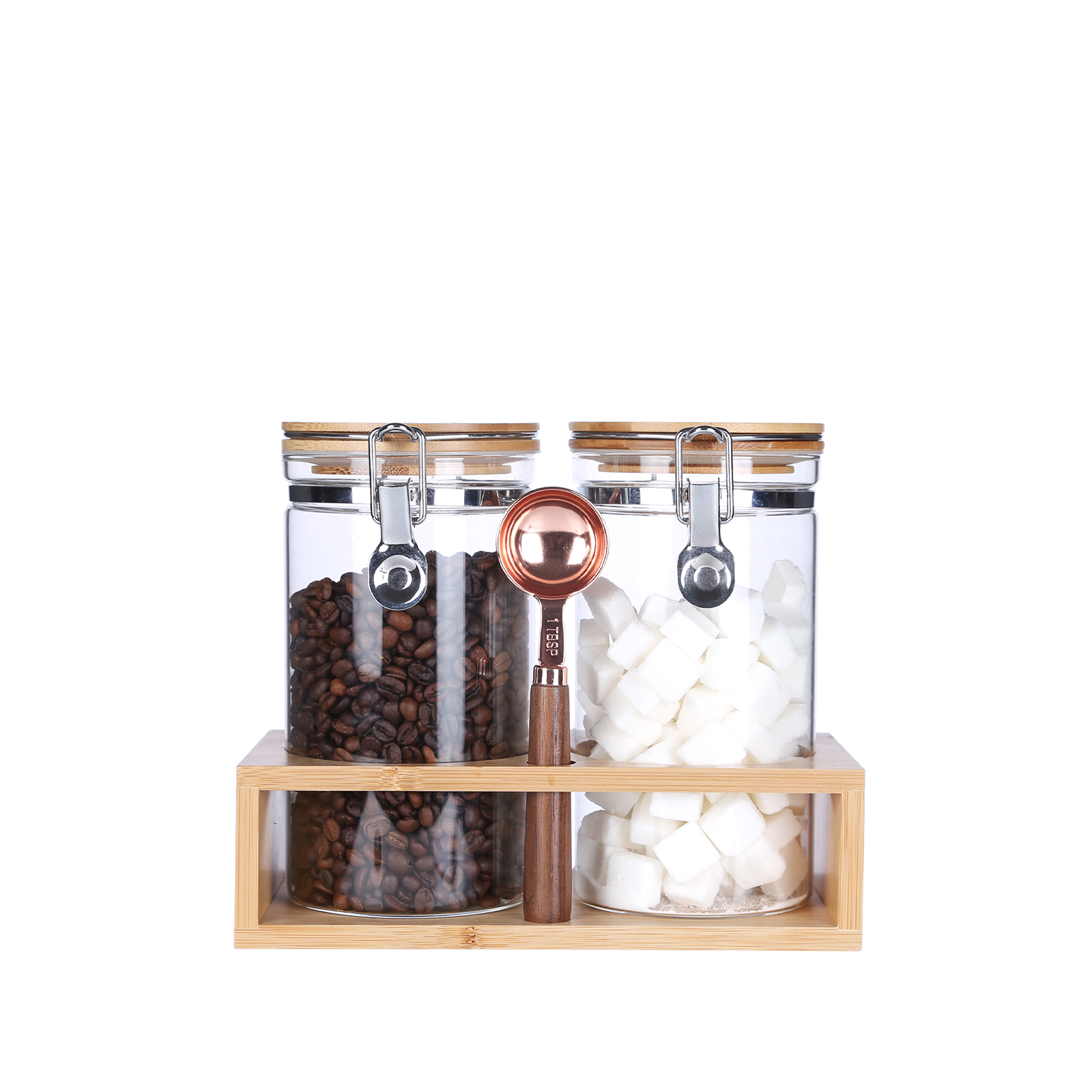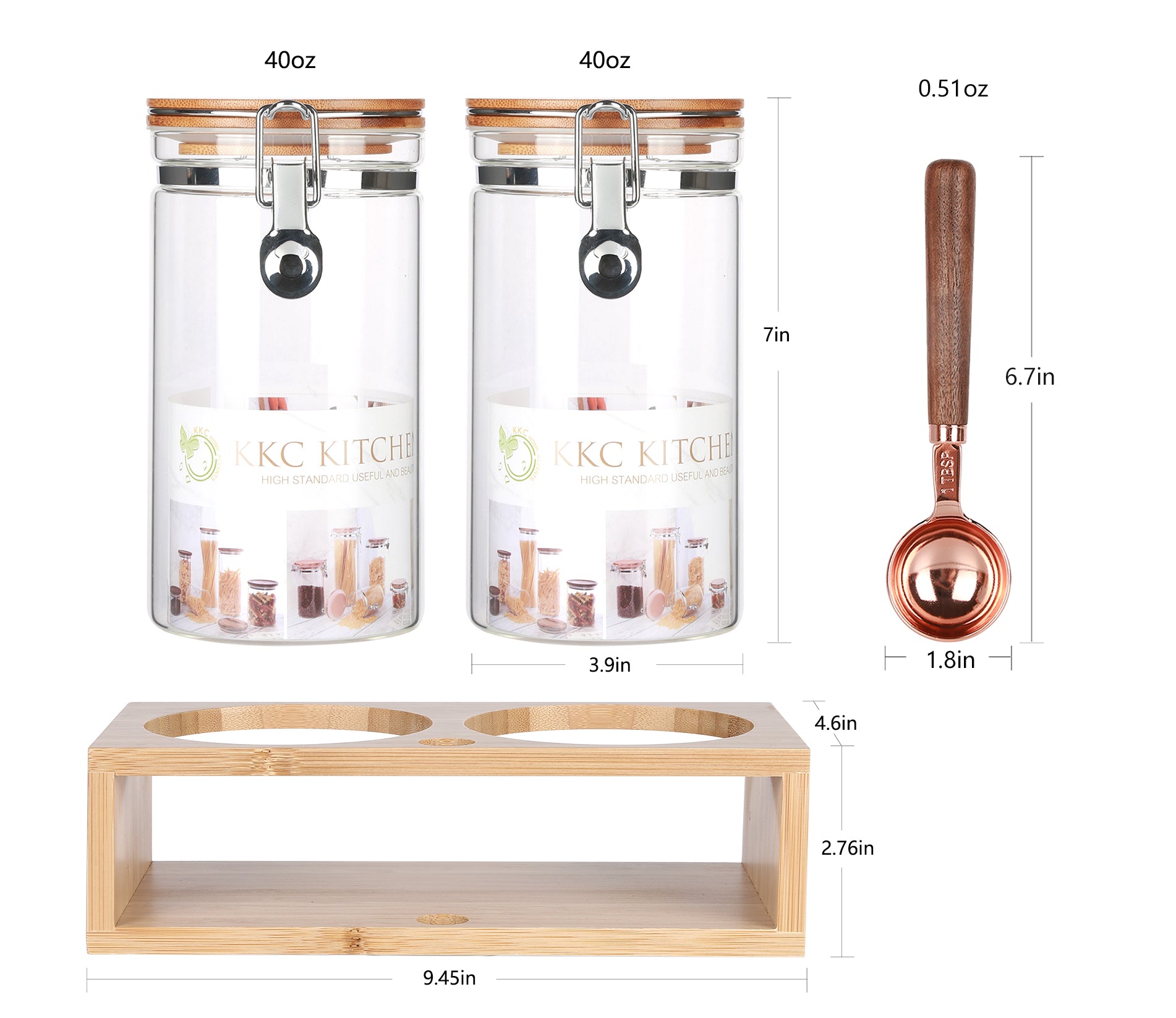 KKC Borosilicate Glass Storage Jars with Spoon (Scoop),1200ml 2pcs