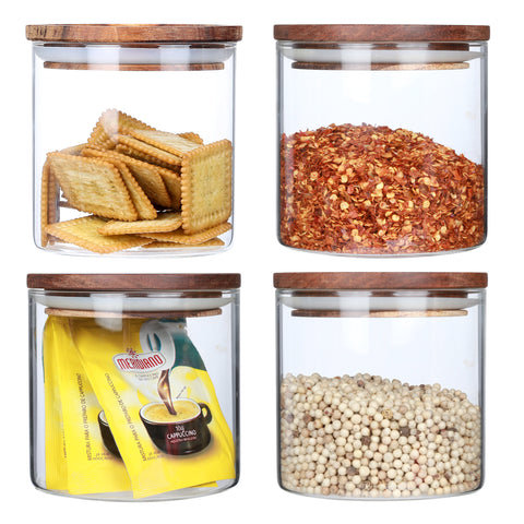 KKC Borosilicate Glass Storage Jars with Wooden Lids,18 FLoz (550 ML),Set of 4