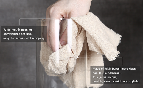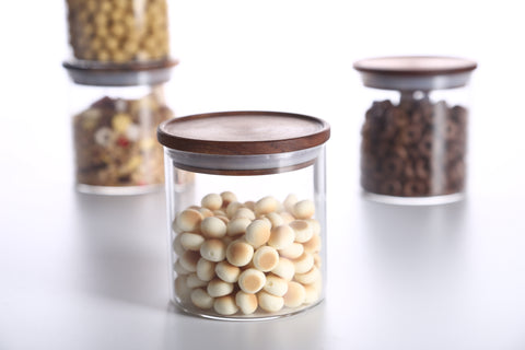 【Material & Quality】 : The glass storage jar with wood lid,passed the FDA certification,made from high-grade clear borosilicate glass,the lid is made from natural wood.