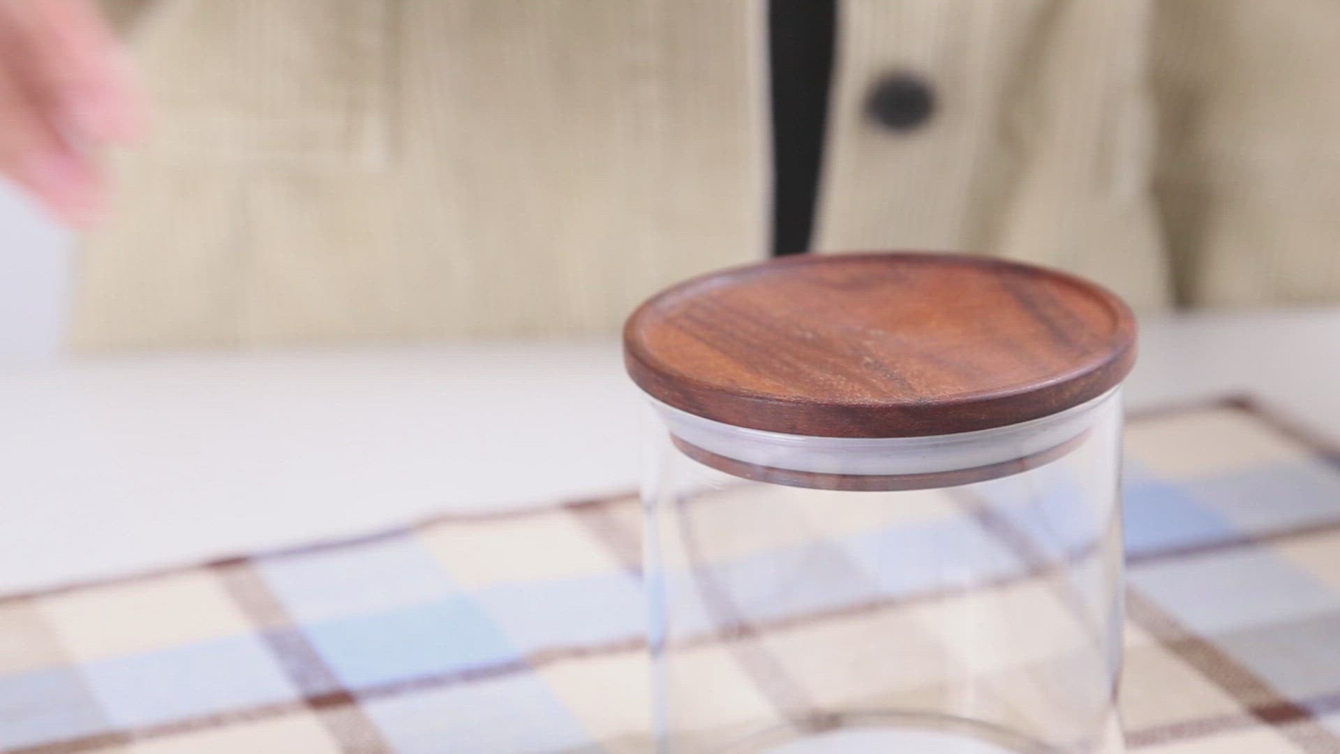 【Material & Quality】 : The glass storage jar with wood lid,passed the FDA certification,made from high-grade clear borosilicate glass,the lid is made from natural wood.