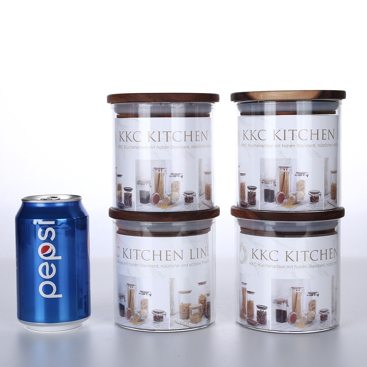 KKC Borosilicate Glass Storage Jars with Wooden Lids,18 FLoz (550 ML),Set of 4