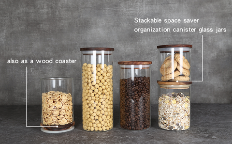 - 【Material & Quality】 : The glass storage jar with wood lid,passed the FDA certification,made from high-grade clear borosilicate glass,the lid is made from natural wood.