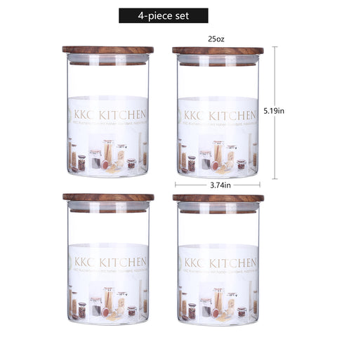 KKC Glass Airtight Food Storage Jar Containers with Wooden Lids, 25 FLoz (750 ML)