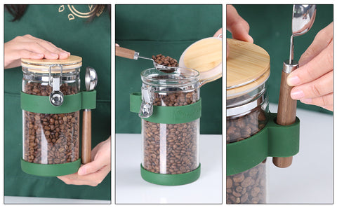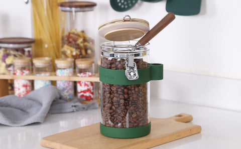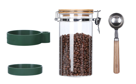 - 【Good air tight seal】: the airtight lid has a locking clamp and silicone sealed ring,the silicone sealed ring keeps its contents fresh,so the glass sealed jar is perfect for storing coffee beans,ground coffee,cocoa,nuts or candy bluck, keeps your coffee beans nice and fresh.