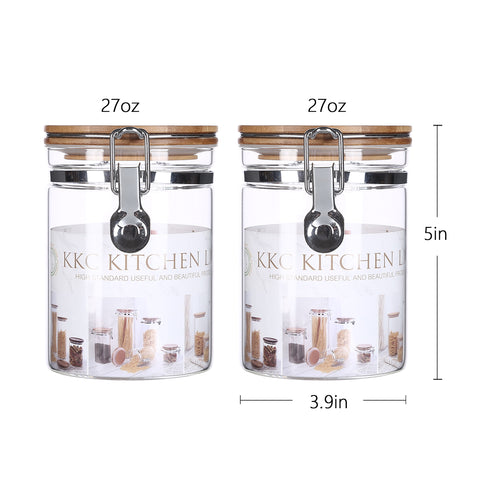 KKC Glass Storage Jars with Airtight Lids,27 Floz (800 ML x 2)