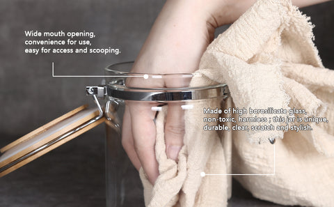 - 【Material】:The glass jar is made from clear brosilicate glass,and the sealed lid is made from natrual bamboo lid.