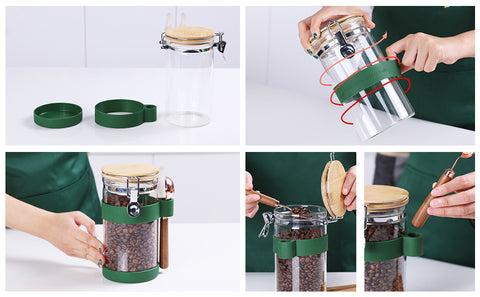 - 【Good air tight seal】: the airtight lid has a locking clamp and silicone sealed ring,the silicone sealed ring keeps its contents fresh,so the glass sealed jar is perfect for storing coffee beans,ground coffee,cocoa,nuts or candy bluck, keeps your coffee beans nice and fresh.