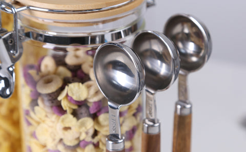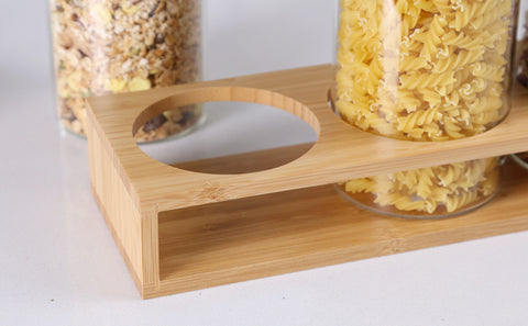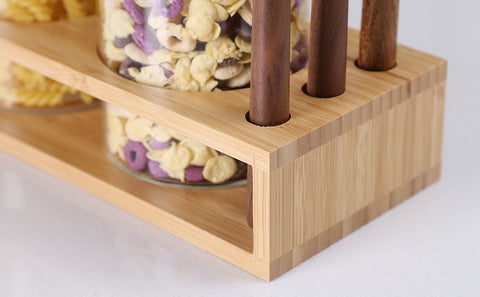 - 【Packing list】:glass Jar x 3pcs, scoops x 3pcs, bamboo rack x 1pcs.