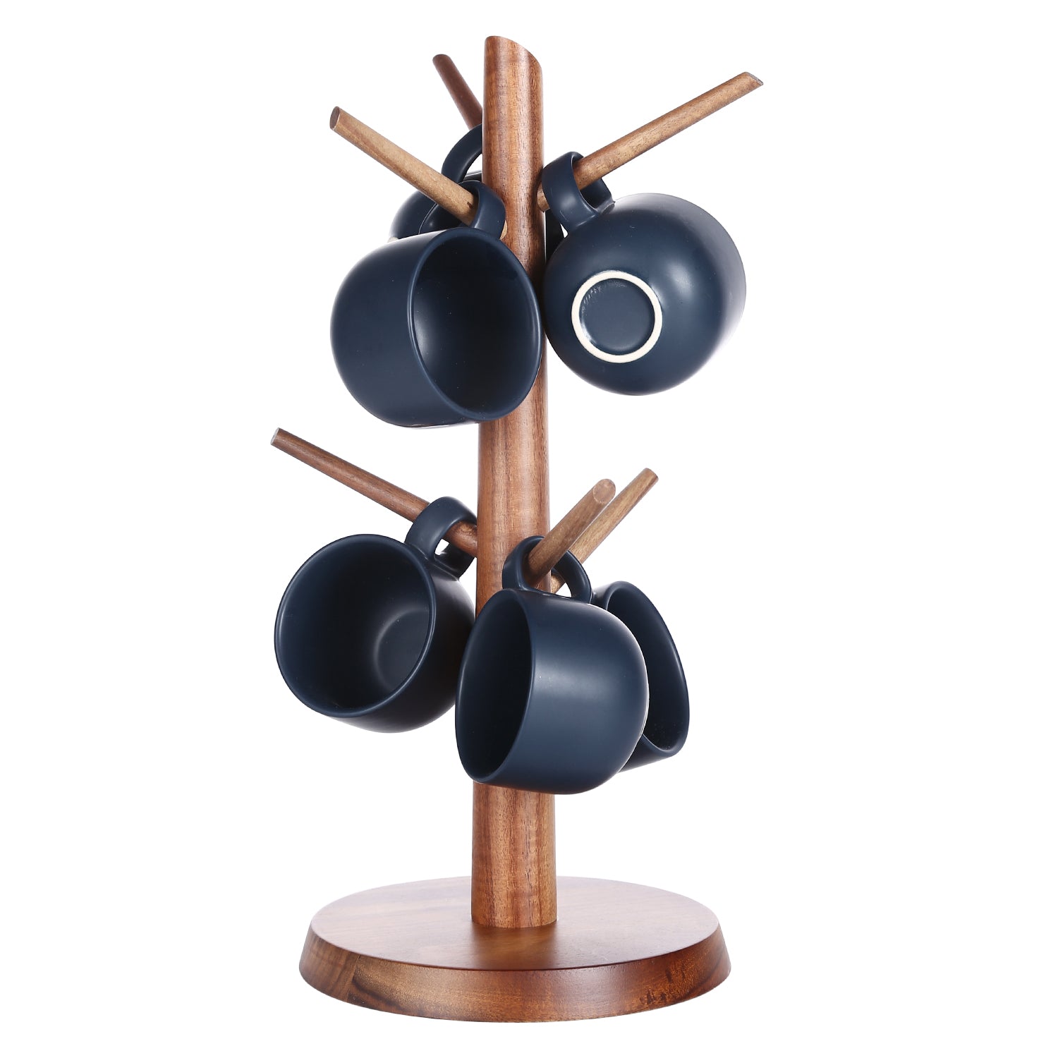 KKC Wooden Mug Holder Tree with 6 Black Ceramic Coffee Mugs,Coffee Cup Holder Tree with 6 Coffee Cups